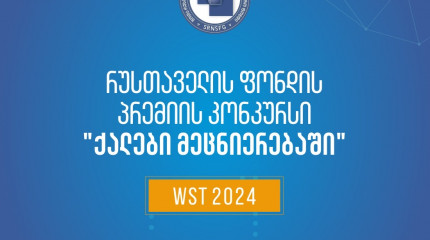 ფონდი აცხადებს 2024 წლის შოთა რუსთაველის საქართველოს ეროვნული სამეცნიერო ფონდის პრემიის კონკურსს - “ქალები მეცნიერებაში“ - განსაკუთრებული მიღწევებისათ ...